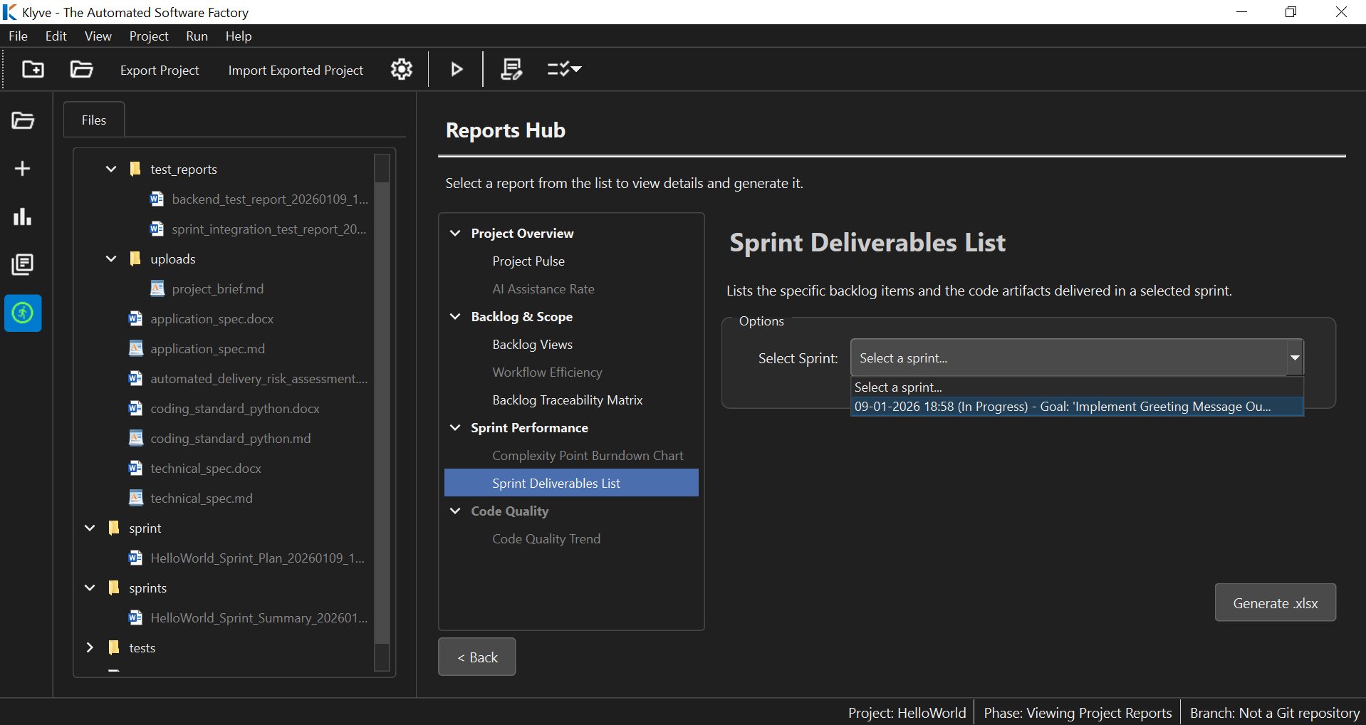 - Audit Trail: Every specification, plan, report and code change is saved to your local disk in standard formats (.docx, .md, .xlsx) for total transparency.